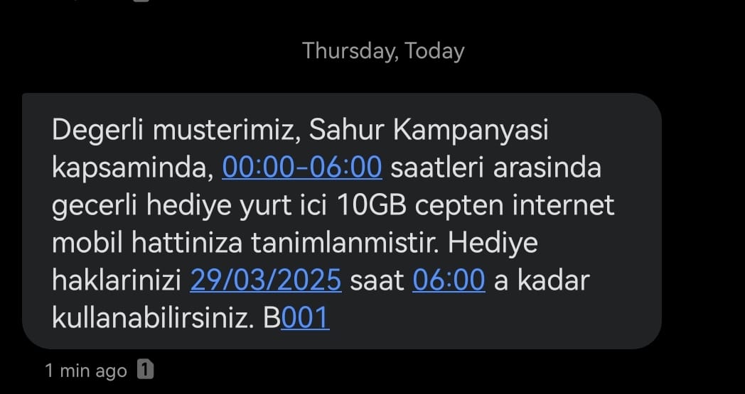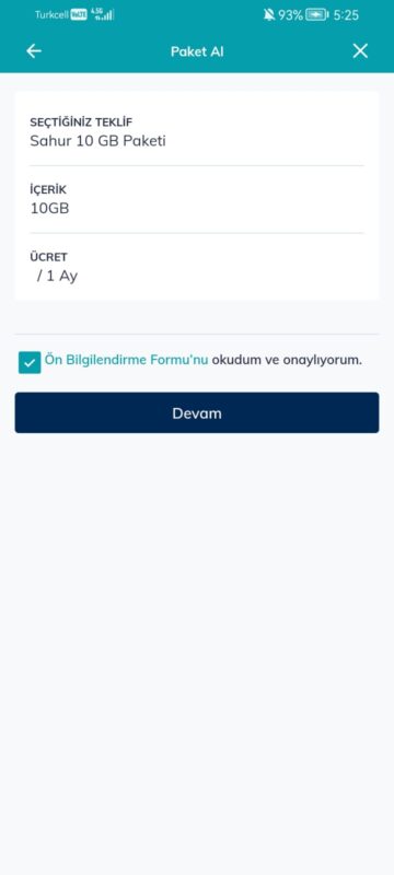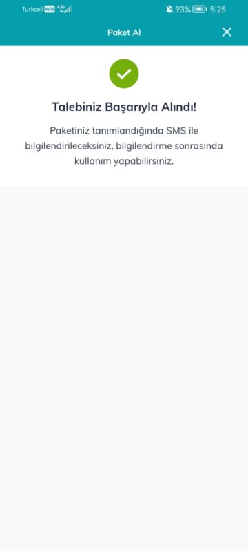 Ardından talebinizin başarılı bir şekilde alındığına yönelik sonuç ekranı gelecek. Paket Ramazan Ayı içerisinde 00.00 – 06.00 saatleri arasında geçerli olacak şekilde kullanılabilecek.