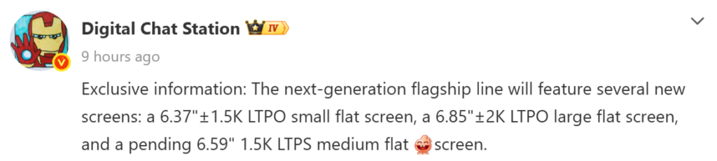 Digital Chat Station adlı bilgi kaynağının paylaştığı yeni bir sızıntıya göre; vivo bu yıl X500 serisi için üç farklı ekran boyutu sunabilir. Sızıntıda, LTPO teknolojisine sahip 6.37 inç 1.5K düz ekran, daha büyük 6.85 inç 2K LTPO düz panel ve henüz değerlendirme aşamasında olduğu belirtilen 6.59 inç 1,5K LTPS düz ekran yer alıyor.